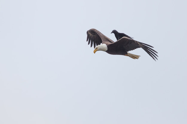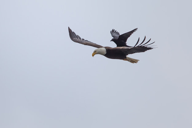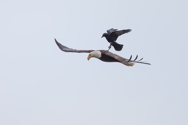 This Crow Was Seen Riding On an Eagle. Bird Friends.