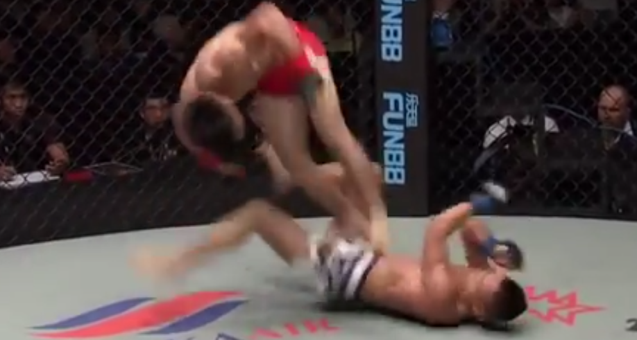 This MMA fighter just pulled off a move you probably only see in movies. An acrobatic-kick-to-the-balls move that was so flawlessly pulled off, his opponent was out of the fight. Immediately. Check it out below: