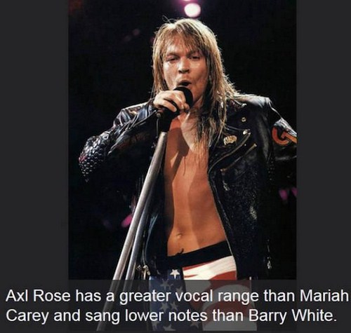15. Axl Rose has a greater vocal range than Mariah Carey and sang lower notes than Barry White.