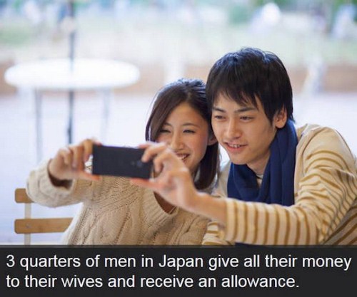 8. 3 Quarters of men in Japan give all their money to their wives and receive an allowance.