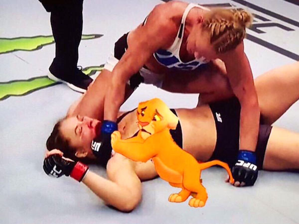 The Internet is trashing Ronda Rousey now for her big and trash talk style before fighting Holly Holm. And when she got KO'd by her headkick, the Internet reacted by photoshopping a ton of pictures like these. Check it out:
