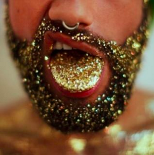 Want to look like an absolute cartoon with some jazz to go with it? Then you're going to want to try this trend out: glitter beards. It's that shiny annoying stuff, but on your beard instead. Oh wow. It's so..shiny? Check it out.