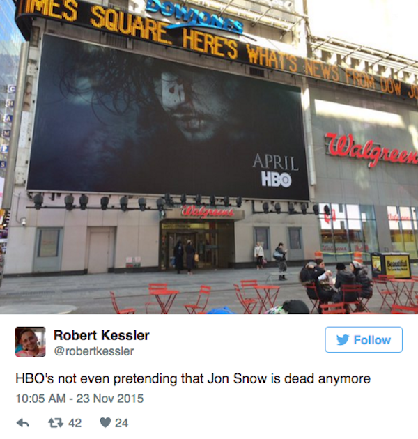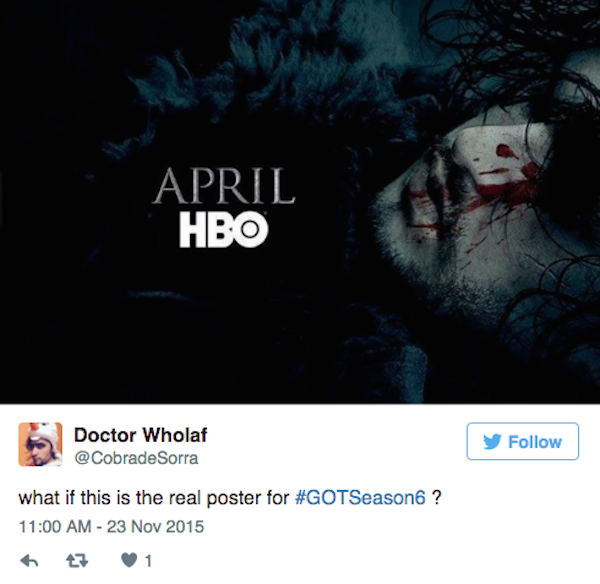 Now that we've gotten official confirmation that Jon Snow is well and alive, people are reacting to the teaser poster that HBO released yesterday. Yes, we already know this. Tell us something that's new. Right?