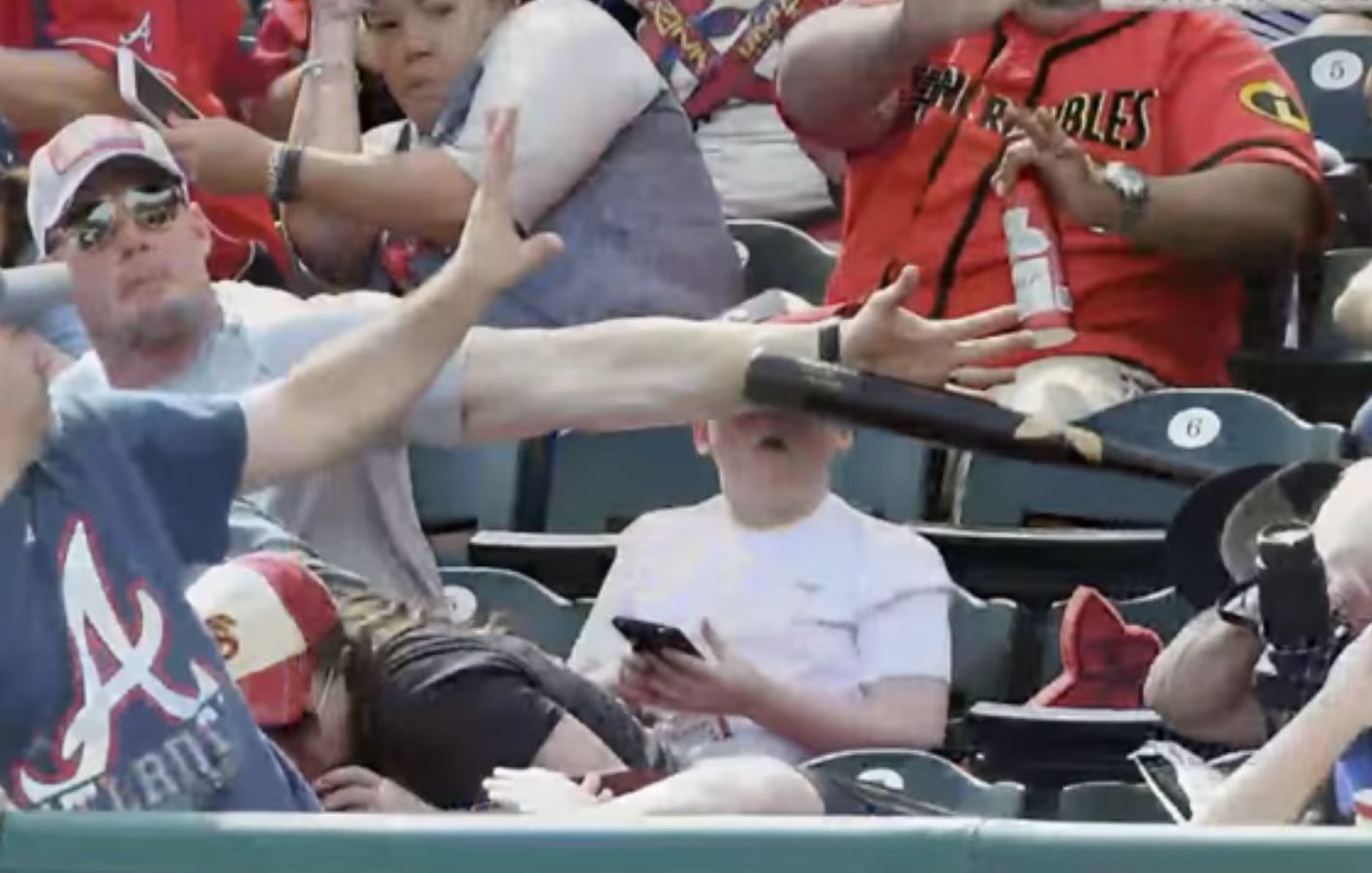 Had this dad not have super fast reflexes, this kid would have bat-face. A flying baseball bat was headed his way, but quickly deflected thanks to this guy. Check it out.