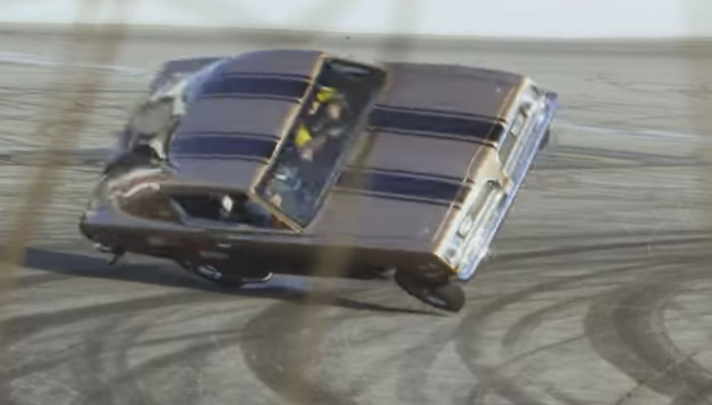 Jay Leno experienced an unwanted roll over on the back wheels of a 2,500 hp car with legendary stunt driver Bob Riggle.