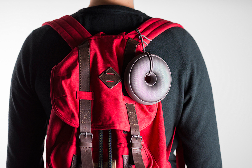 Simone Spalvieri and Valentina Del Ciotto have combined their talent together to produce this versatile Bluetooth speaker. Dubbed the Hoop, it is a donut shaped wireless speaker that comes with two accessories - a rubber cord for you to attach it to anywhere you want and a soft hook to hang it on a wall.