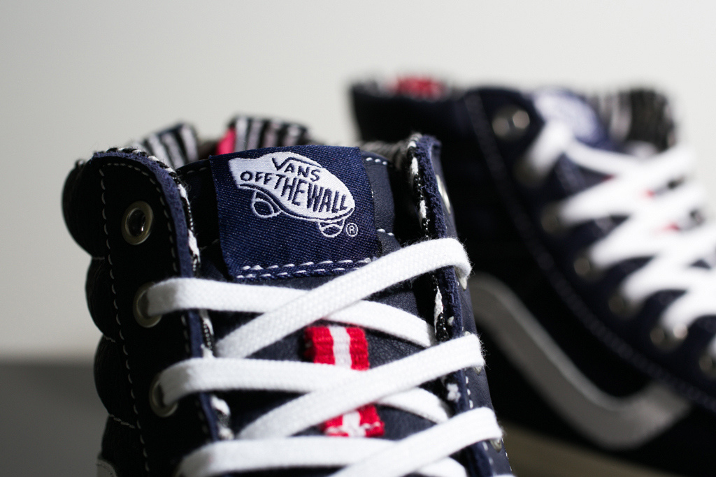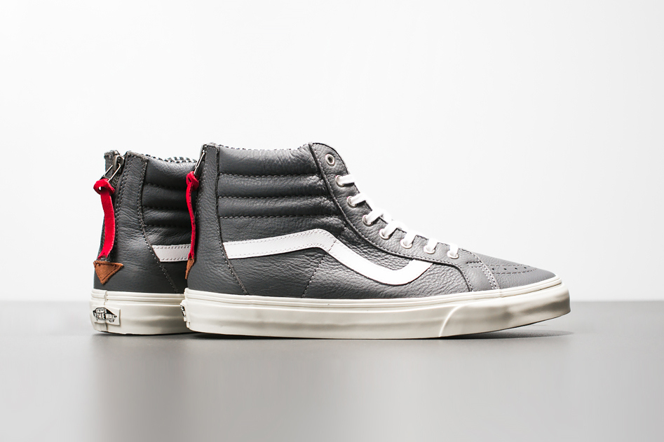 Vans California's Sk8-Hi CA's classic 'jazz stripe' looks handsome in these colorways, pairing blue and white, white and navy and grey and white respectively across a range of three pairs. Each come with premium leather at the upper, while metal eyelets and zippers at the back give it an air of durability.