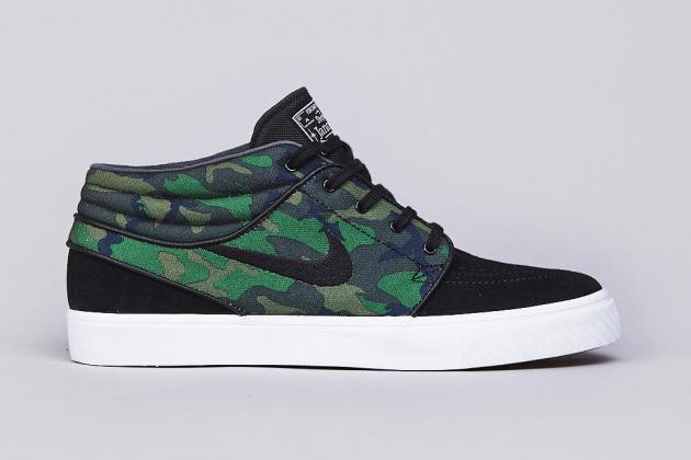 Stefan Janoski‘s mid-top Nike SB signature receives the camo treatment and is back with a Black/Iguana color combo for Fall/Winter 2013. The kicks are now available via Flatspot.