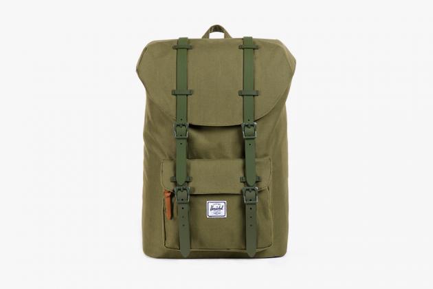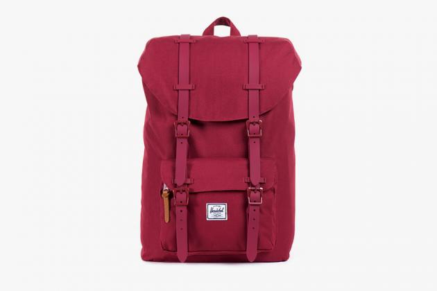 The Herschel Supply Co. Little America Mid maintains the same classic mountaineering aesthetic and elements as its larger counterpart with colored rubber straps and pin clips. Available in army and burgundy with navy and black on offer in original materials. Check it out below: